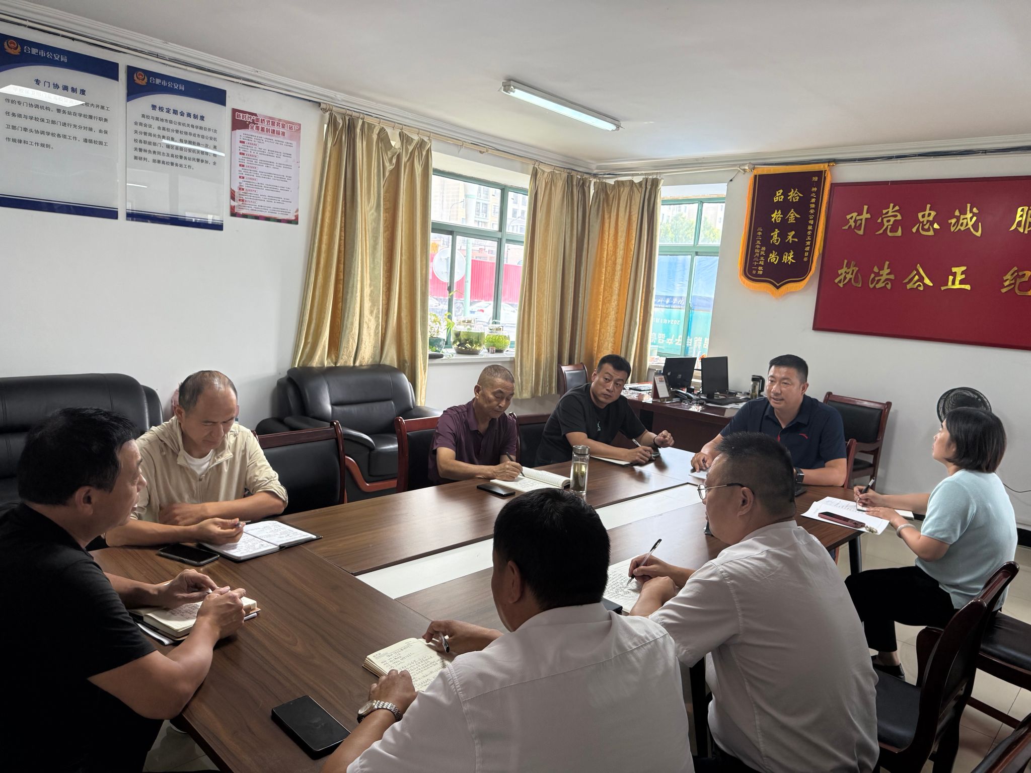 为保障新学期学校各项工作安全有序进行,9月4日下午,安全管理处在双凤校区警务室召开2025年秋季学期开学工作会议。安全管理处全体成员及安保公司代表参加会议。会议由副处长丁闯主持。