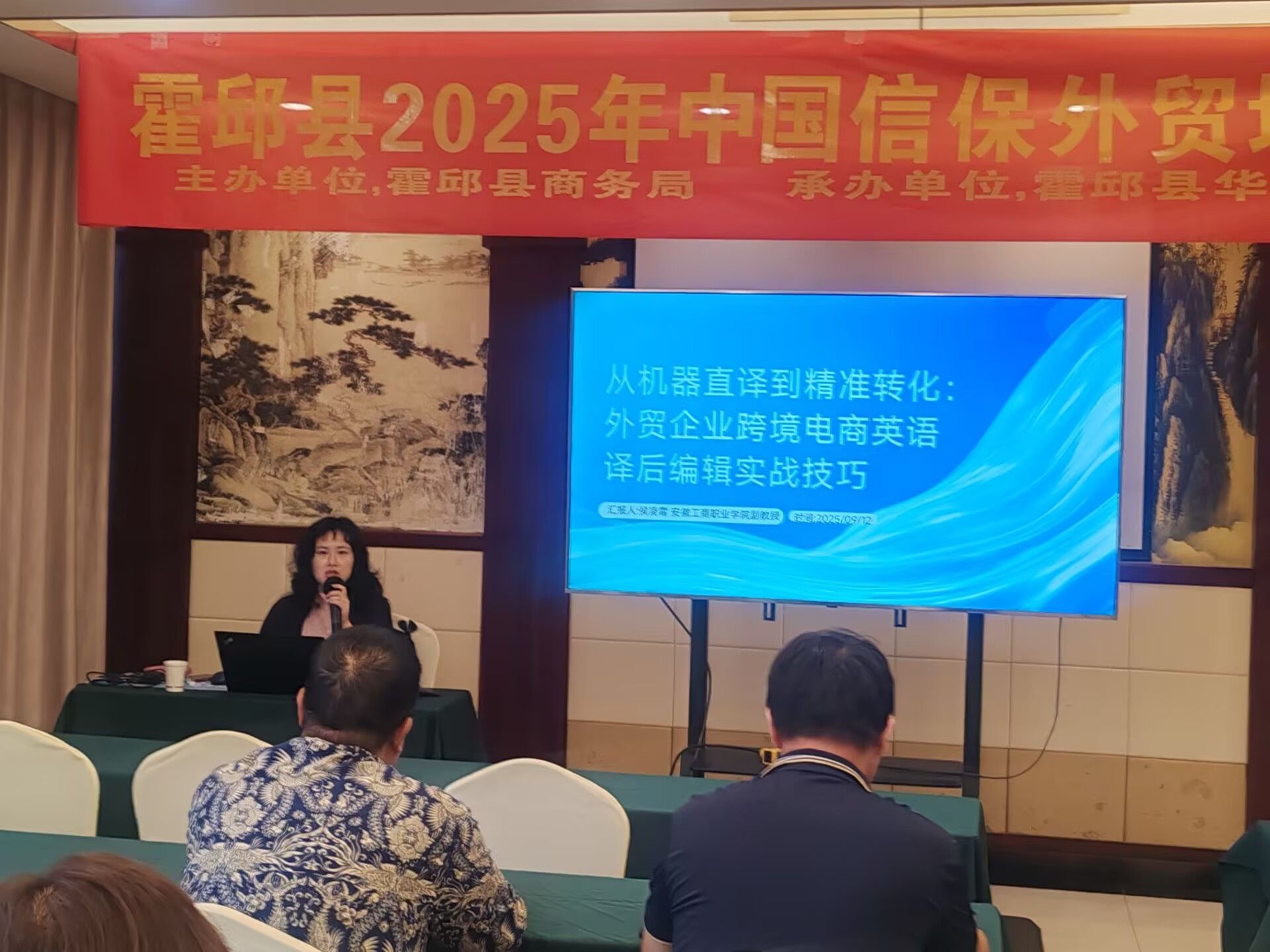 近日,由霍邱县商务局主办、多家单位协同推进的“2025年霍邱县中信保外贸培训”在霍邱县成功举办。安徽工商职业学院经济贸易学院应主办方邀请,选派三名专业教师进行本次培训授课,为全县外贸从业人员带来了内容丰富、实操性强的专题课程,受到参训学员和主办单位的一致好评。