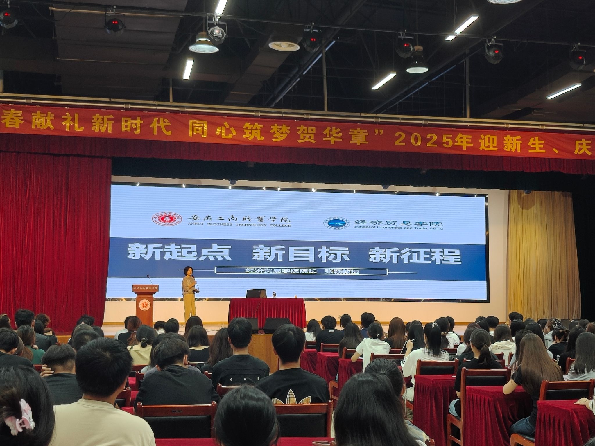 入学教育首站聚焦理想信念与校史校情传承。9月28日上午,经济贸易学院院长张颖以“新起点 新目标 新征程”为题,从学院办学历史、师资力量、专业布局、校企合作成果等方面展开院情介绍,结合高职教育“产教融合”特色,讲述学院“知行合一 内外兼修”的人才培养理念和“基本就业力、职业迁移力、持续发展力”的人才培养目标,激发新生的专业认同感与归属感。学院党总支副书记马莉则围绕“学情规划与学风建设”,通过案例分析、经验分享,指导新生制定大学学习计划,解读课程体系与考核标准,通过“浪浪山小妖怪”的成才之路等学生喜闻乐见的形式,强调了“勤练技能、善思笃行”的高职学习特质,为新生搭建清晰的学业成长框架。