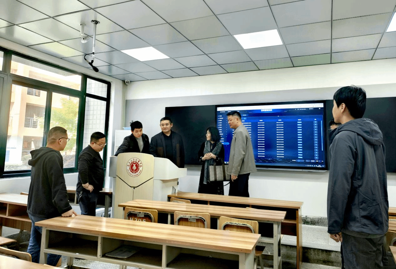 考察期间,余丙炎向杨斌校长一行详细介绍了我校智慧教室的建设理念、整体架构以及运行成效。考察团一行先后走进多间智慧教室和智慧校园运维调度中心,通过现场演示和体验,详细了解了电子班牌系统在课程信息发布、校园文化展示、信息通知等方面的便捷功能,以及智能设备物联管控系统在优化能源使用、提升管理效率、保障校园安全以及支撑智慧教学环境等方面取得的显著成果。