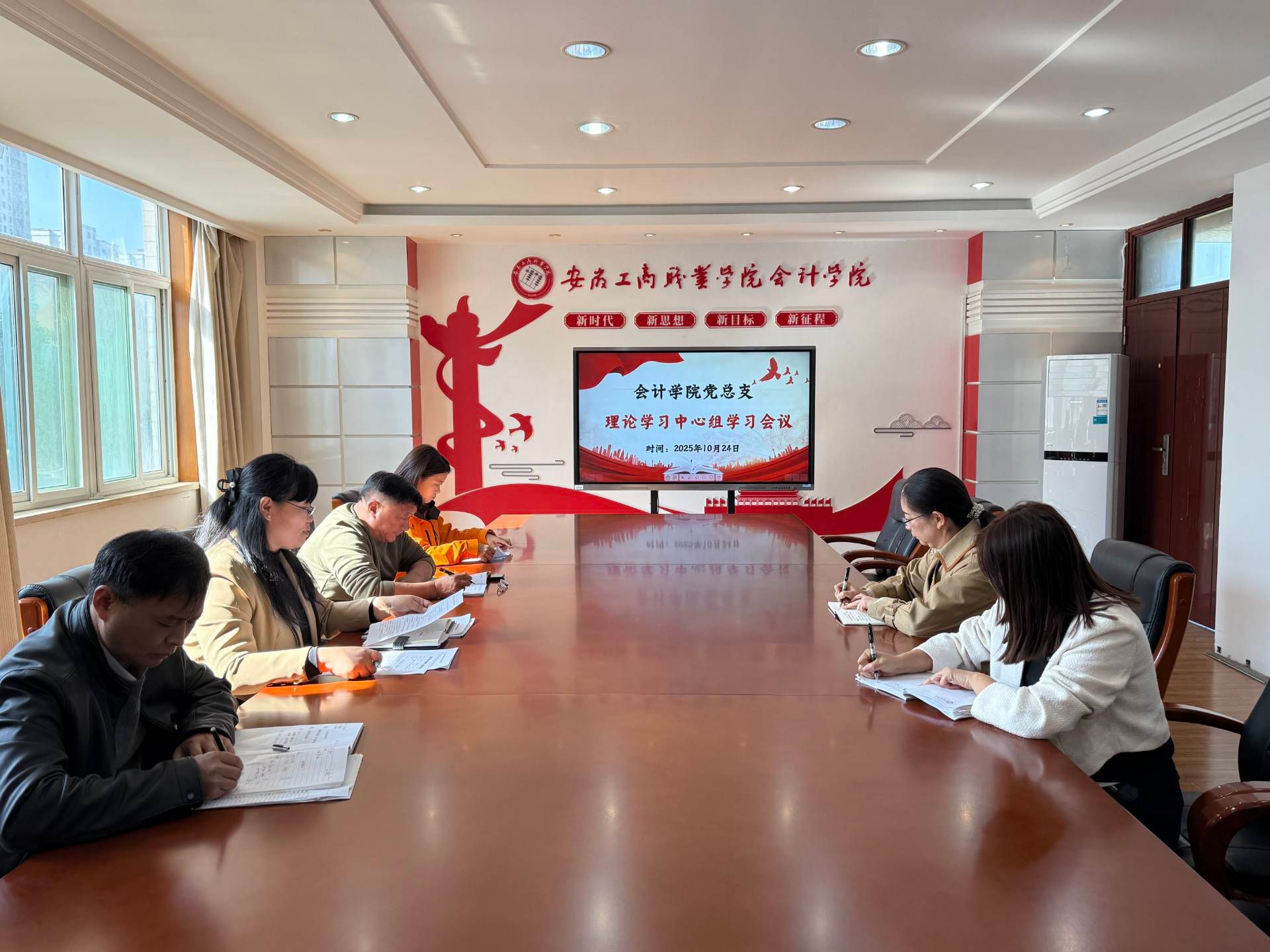 10月24日上午,会计学院党总支在明德楼二楼党建会议室召开10月理论学习中心组学习会议,赵艳主持会议并讲话,党总支委员参加学习。