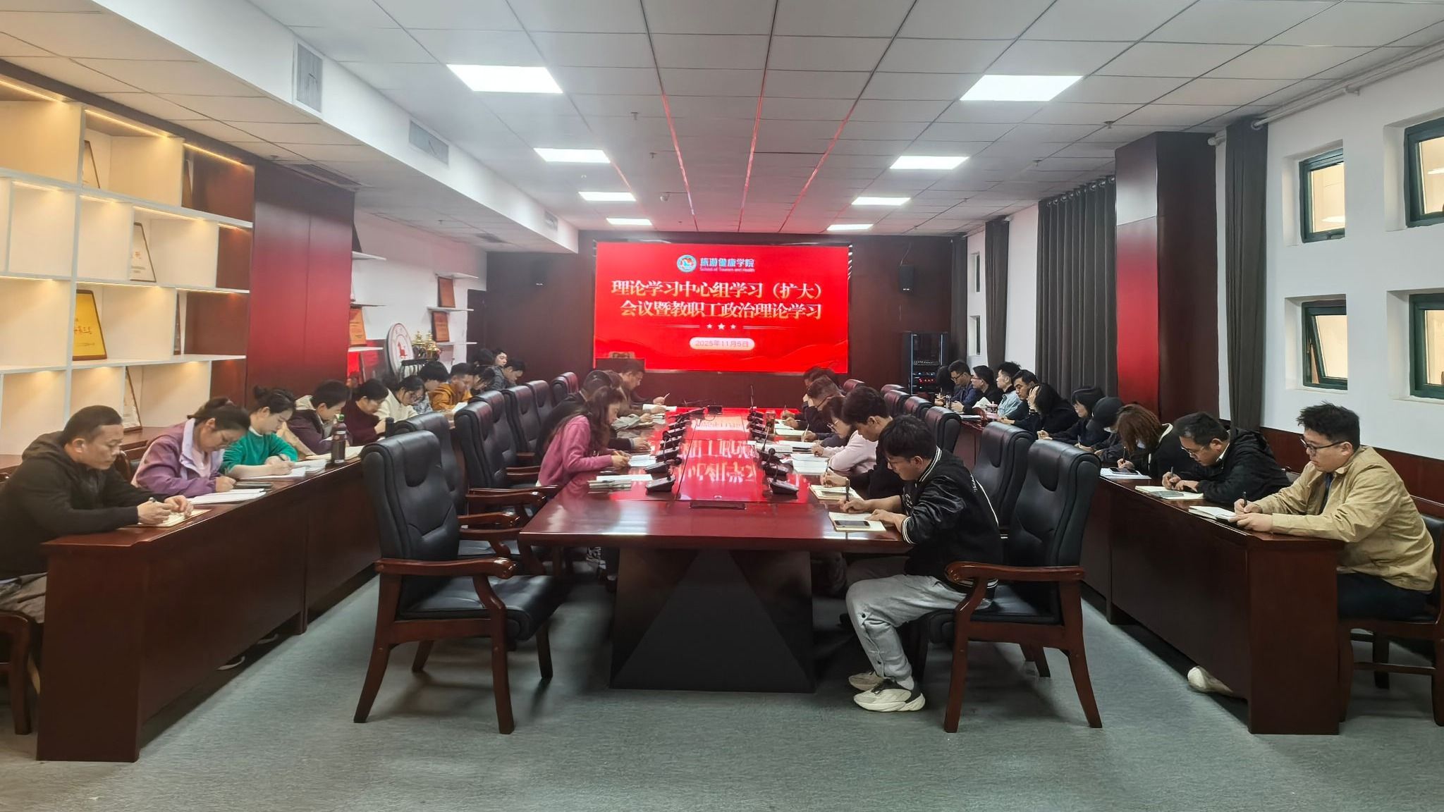 11月5日下午,旅游健康学院党总支在学院会议室召开理论学习中心组学习(扩大)会议暨教职工政治理论学习,会议由党总支书记杨锐主持,全体教职工参加会议。