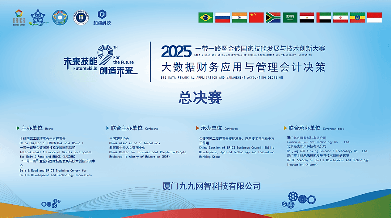 2025年11月23日,2025年一带一路暨金砖国家技能发展与技术创新大赛“大数据财务应用与管理会计决策”赛项全国总决赛圆满落幕。会计学院学子田陈陈、李玉敏、钟心欣、李同组成的参赛团队,在唐义杰、张智慧、刘玥、贾海峰四位老师组成的指导团队悉心指导下,凭借扎实的专业功底与出色的实战能力,从全国众多晋级队伍中脱颖而出,最终摘得该赛项一等奖第一名的桂冠,为学院赢得了荣誉。
