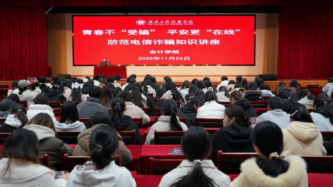 11月26日下午,会计学院联合安全管理处,特邀长丰县公安局反诈中心小白警官,在大学生活动中心为会计学院师生开展一场生动的反诈宣传教育活动。
