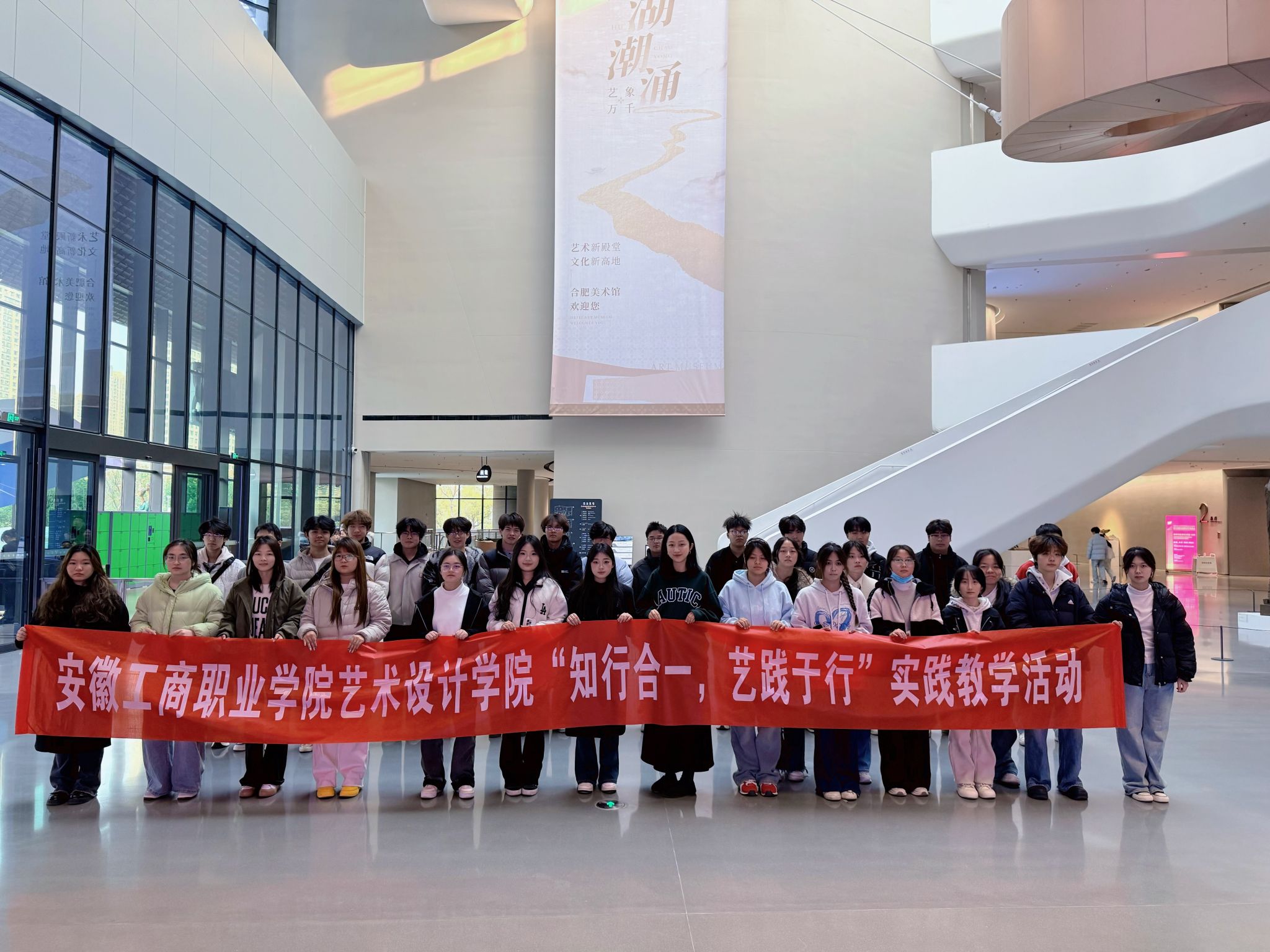 2025年12月10日下午,艺术设计学院25广告艺术设计2班学生在任课教师罗佩婕的带领下组织前往合肥美术馆开展实践教学活动,将《立体构成》课堂延伸至艺术现场。
