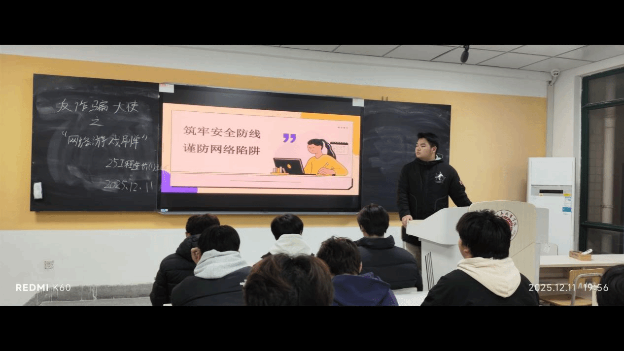 学院各年级辅导员面向全体学生集中开展了安全教育主题班会,聚焦人身、网络、消防、交通、财产、心理等多重安全领域。在“与‘宪’同行,青春无诈”教育中,通过案例剖析、警示短片等形式,教育学生防范和远离电信诈骗。班会中还对不同类型安全风险进行介绍,进一步明确校园安全“红线”,推动学生主动将安全知识内化于心、外化于行,既做好自身安全的“第一责任人”,也积极传播安全理念,共建平安校园。加强信息反馈机制,设立“安全信息员”,压实班委、宿舍长职责,逐步构建起安全隐患早发现、快上报、妥处置的长效机制。