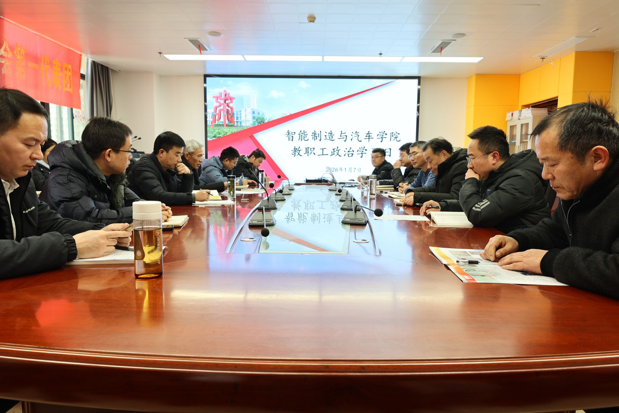 1月7日下午,智能制造与汽车学院党总支召开教职工政治理论学习会议,会议由党总支书记丁浩主持,全体教职工参加会议。