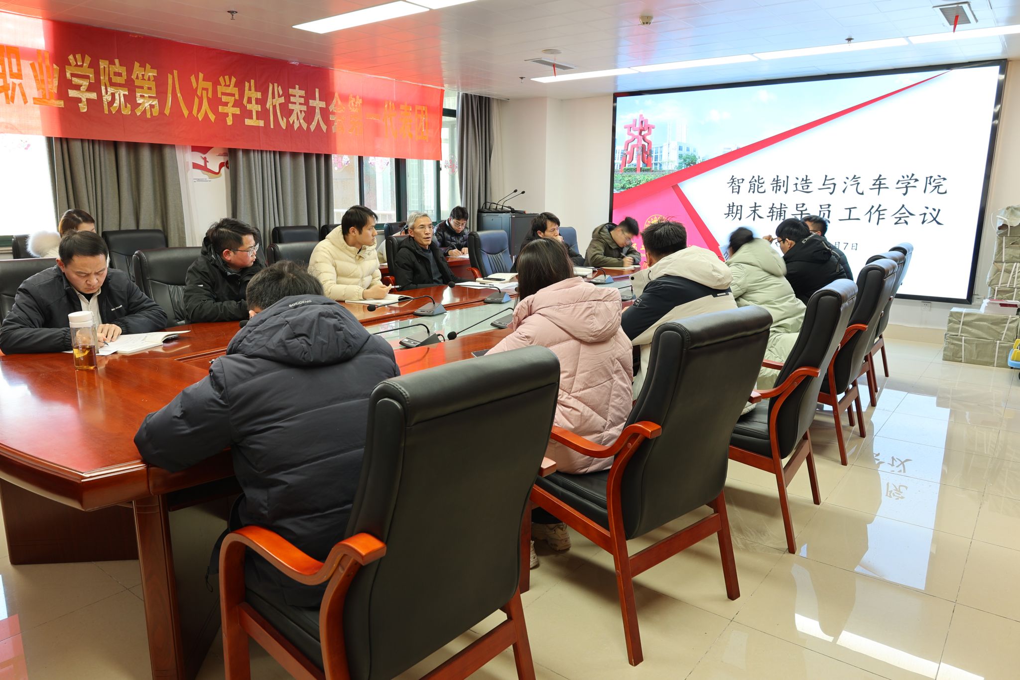 为扎实推进期末各项工作有序开展,切实做好寒假期间学生管理服务工作,1月7日,智能制造与汽车学院召开期末全体辅导员工作会议,会议由学院党总支书记丁浩主持,全体专兼职辅导员参加会议。