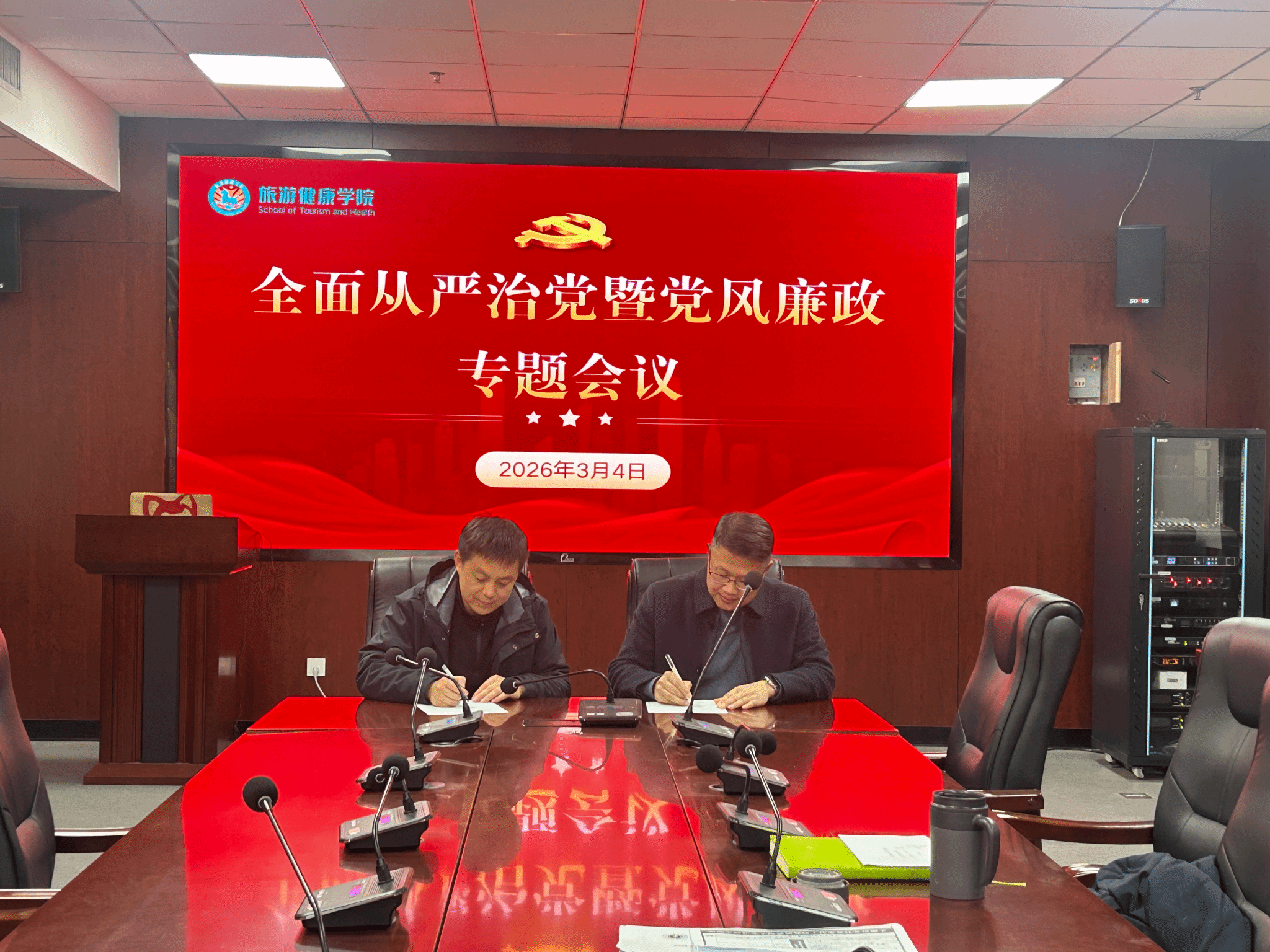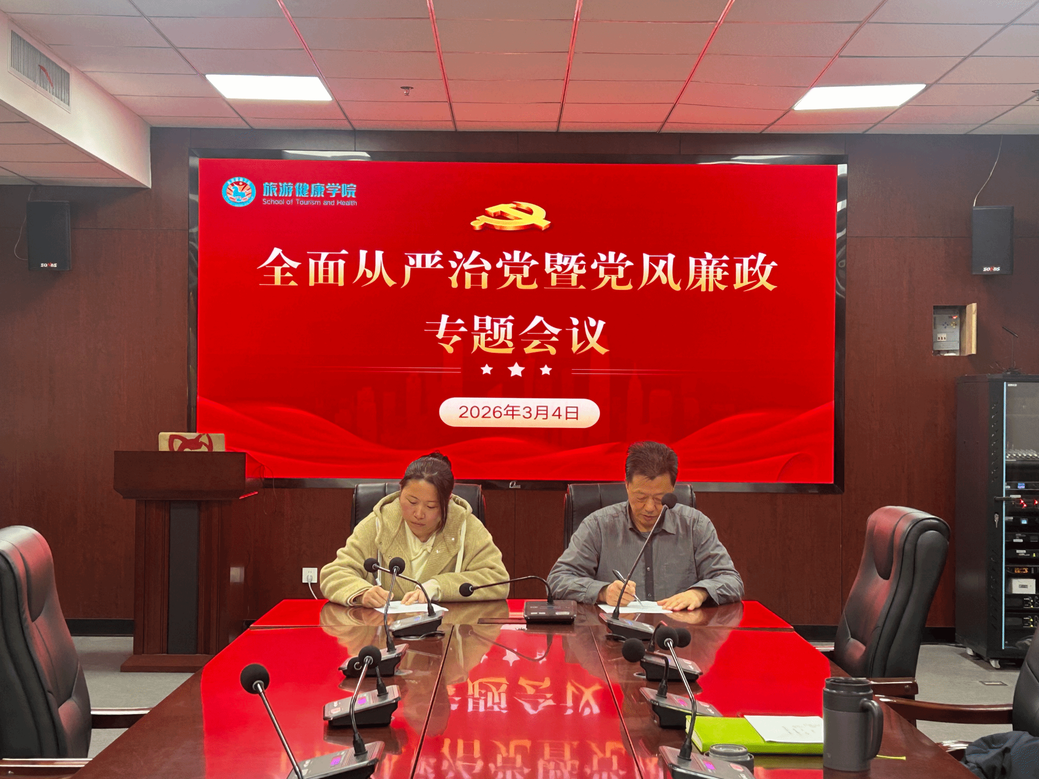 为深入推进全面从严治党,强化师德师风与纪律作风建设,筑牢校园廉洁防线,3月4日下午,旅游健康学院党总支召开新学期党风廉政建设专题会议。学院全体教师参加会议,会议由党总支书记杨锐主持。