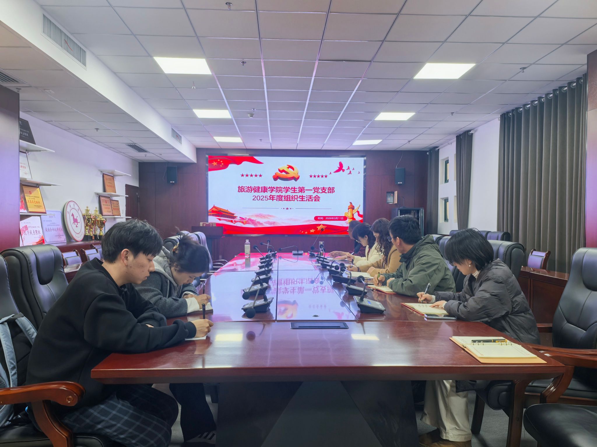 旅游健康学院学生第一党支部在3月11日下午在学院会议室召开2025年度组织生活会,支部全体党员参加会议。