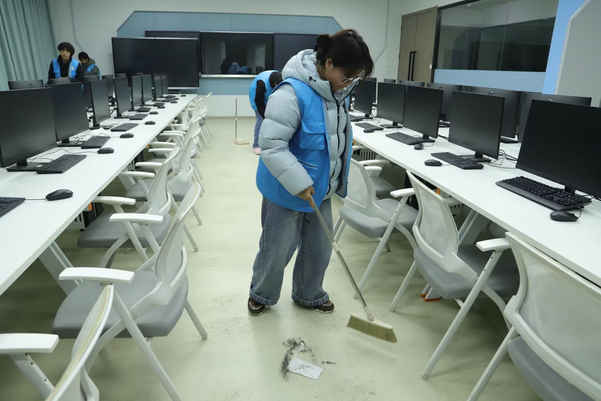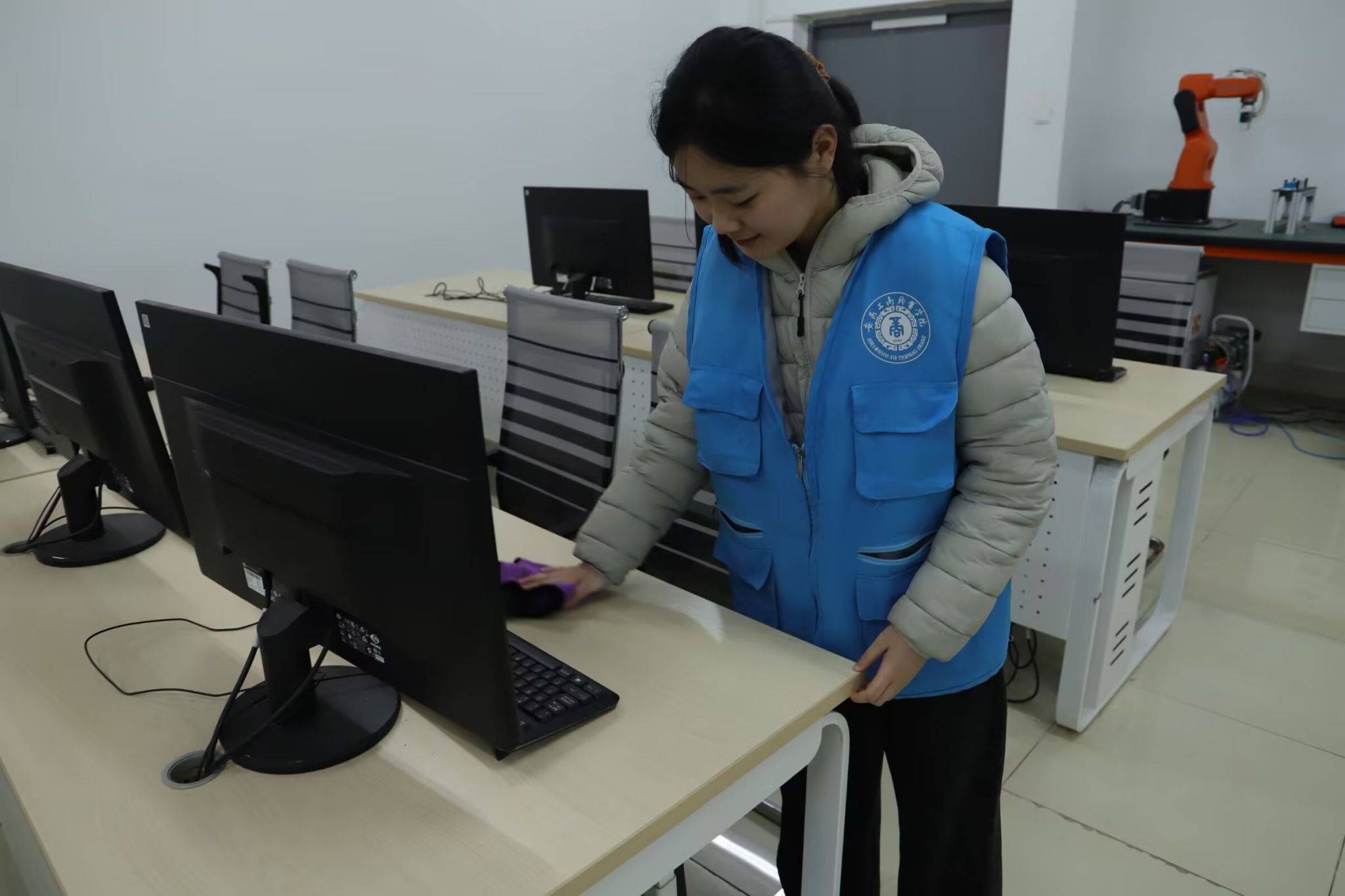 劳动过程中,学子们不怕脏、不怕累,相互配合完成重活累活。面对部分实训设备的精细部件,大家小心翼翼用软毛刷清理缝隙灰尘,展现出工科学生严谨细致的专业素养。经过数小时奋战,各实训室窗明几净,设备器材摆放整齐,实训环境焕然一新,为后续专业教学与技能实训筑牢环境基础。