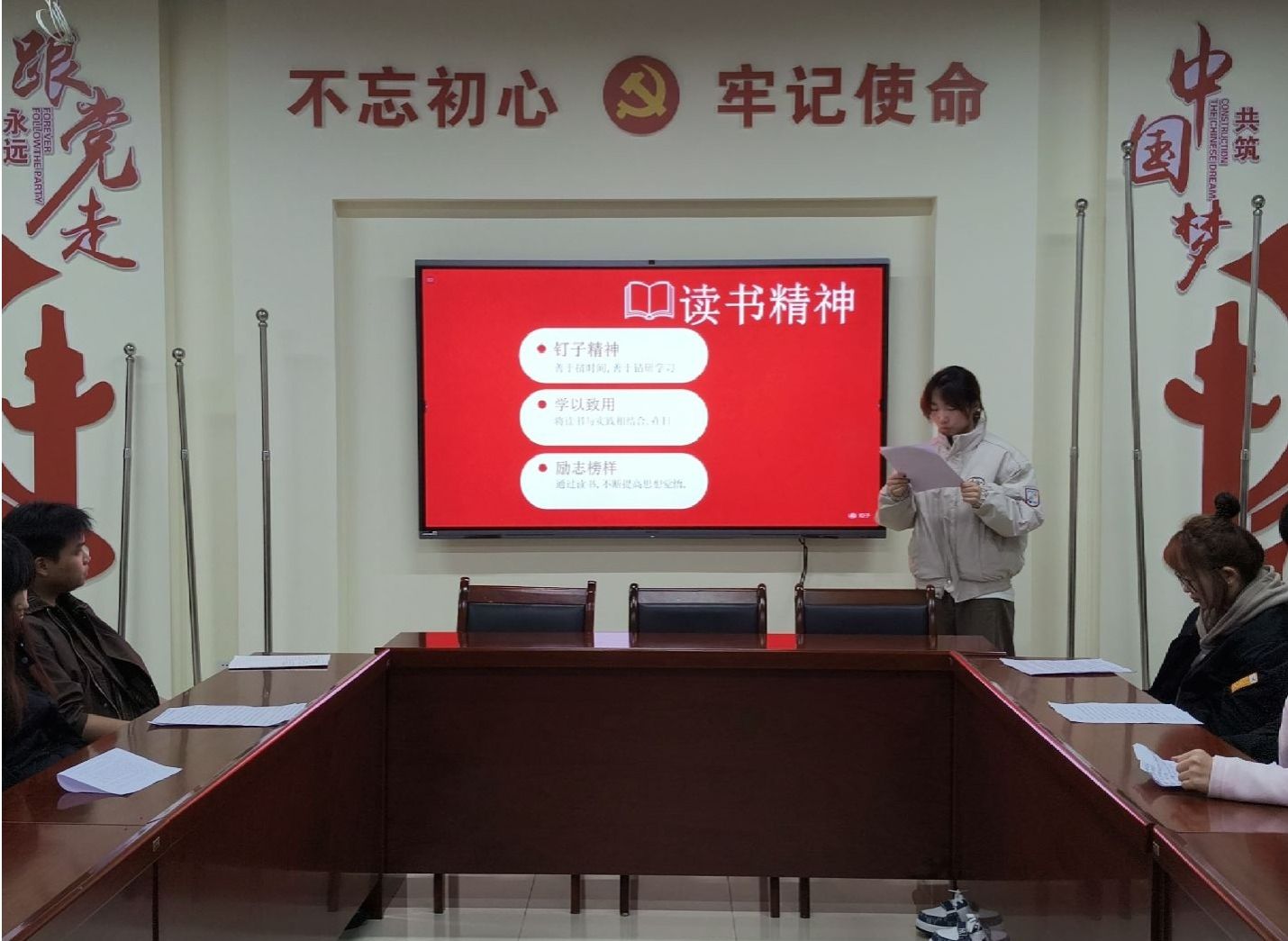 活动现场氛围热烈。团干代表围绕“我身边的雷锋”“雷锋精神的时代回响”两大主题,通过声情并茂的宣讲、精心制作的PPT及珍贵影像资料,带领全体人员重温雷锋同志平凡而伟大的一生。