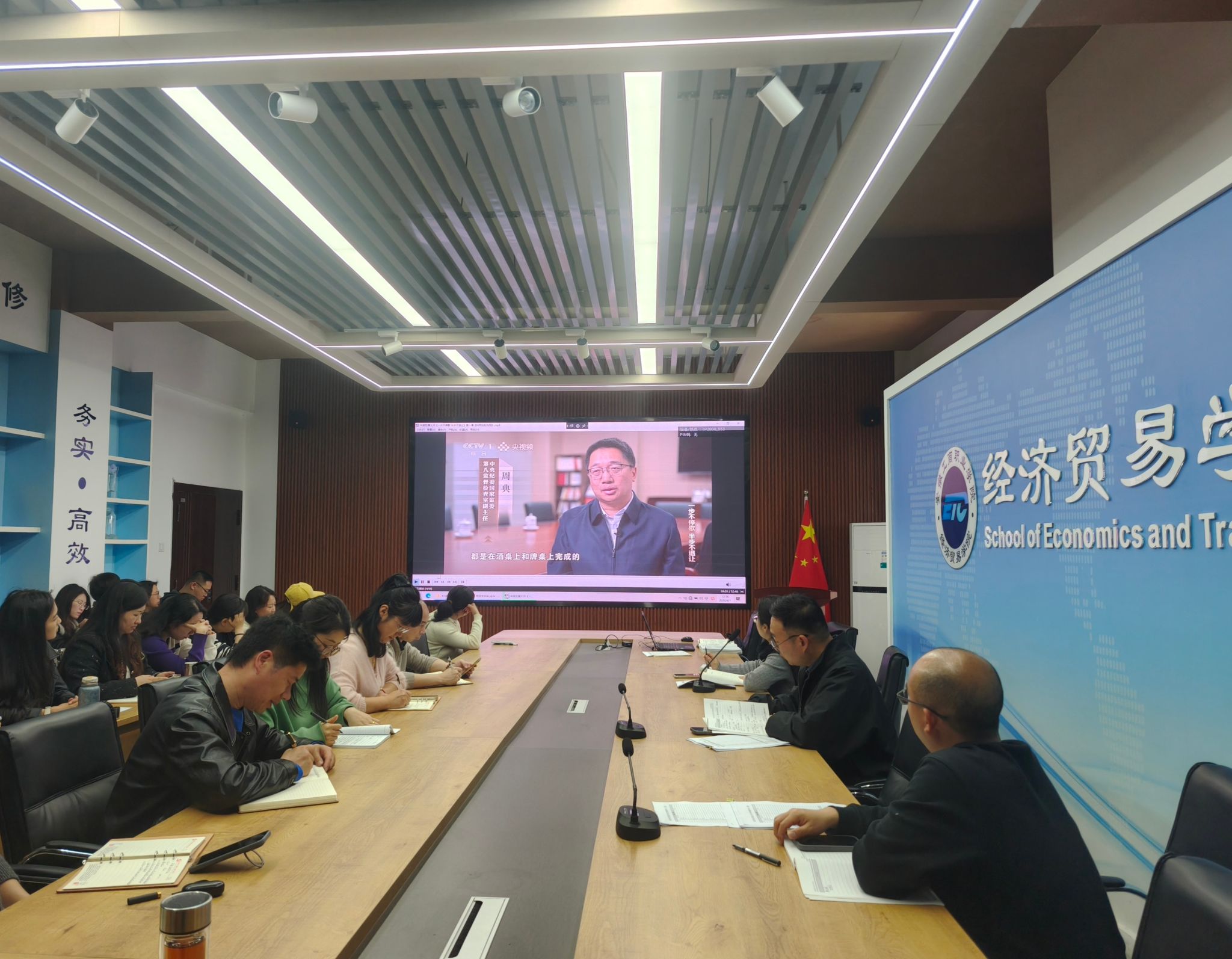 4月1日,经济贸易学院党总支在5楼教师能力提升中心召开4月份教职工政治理论学习会议,集体学习习近平总书记在参加江苏代表团审议时、在中共中央政治局第二十四次集体学习时的重要讲话精神,学习《习近平关于树立和践行正确政绩观论述摘编》的内容,并组织观看警示教育专题片。会议由党总支副书记马莉主持,全体教职工参加会议。