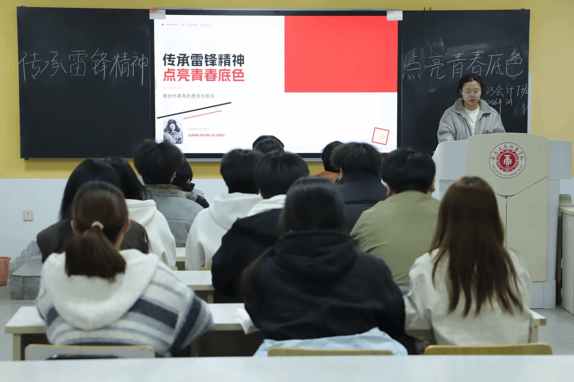 强化思想引领,筑牢精神根基。学院以各班级团支部为载体,广泛开展“学雷锋精神,践初心使命”主题团日活动、“雷锋故事会”分享沙龙等多种形式的活动。通过沉浸式学习、集中研讨等形式,引导学子结合专业背景探索践行雷锋精神的路径,深化思想认同与行动自觉,让雷锋精神真正入脑入心,凝聚起青年奋进的磅礴力量。