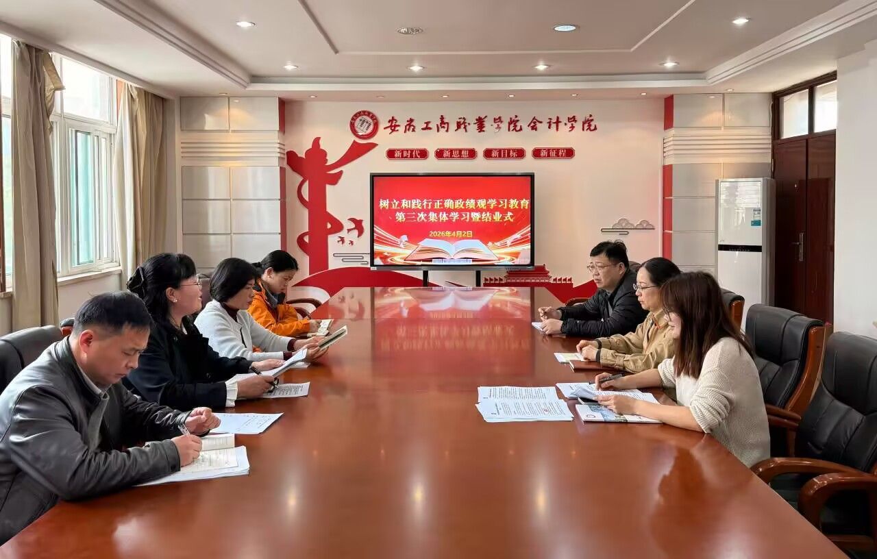 3月31日至4月2日,会计学院党总支举办树立和践行正确政绩观学习教育读书班,通过集中领学、个人自学、警示教育、专题辅导、走访调研、研讨交流等多种形式,组织党总支班子成员深入学习领会习近平总书记关于树立和践行正确政绩观的重要论述,推动党的创新理论内化于心、外化于行。读书班期间,部分环节扩大至全体教职工参加。