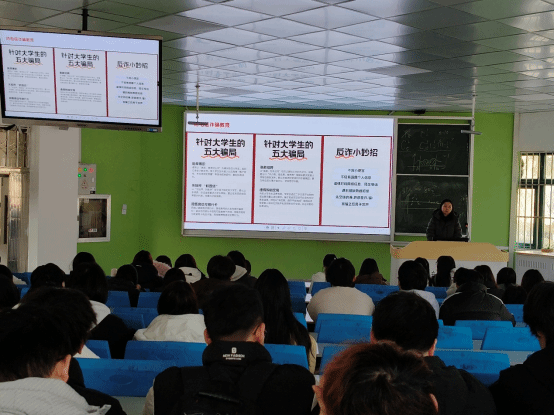 信息工程学院一直高度重视校园反诈工作,坚持预防为先、教育为本,多措并举推进反诈宣传教育走深走实。本学期开学第一周,学院便以班级为单位实现反诈主题班会全覆盖。各班辅导员结合近期发生在高校的真实案例,通过PPT讲解、警示视频播放、互动讨论等形式,详细拆解针对大学生的常见骗局,传授实用反诈小妙招,引导学生树立"不轻信、不透露、不转账"的防范意识,从源头上筑牢思想防线。