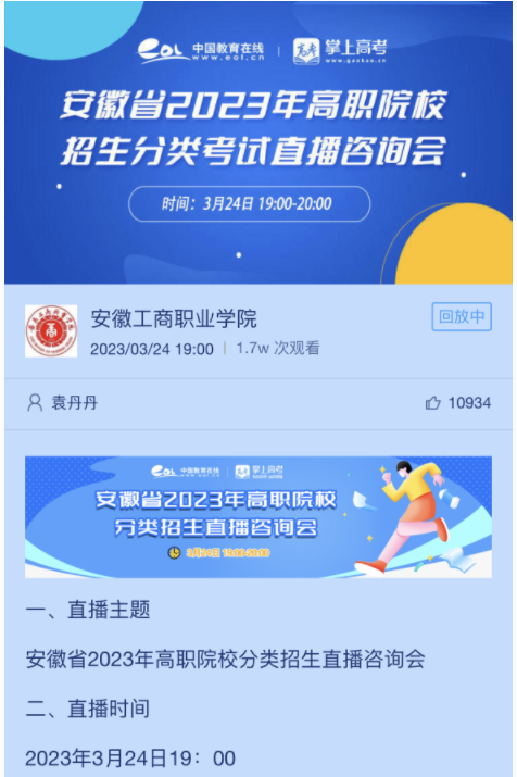近年来,我校办学成绩显著,实现跨越式发展,被誉为安徽省“高职发展标杆校”、“技能大赛标杆校”。通过举办专场直播,相信能够吸引更多优秀学子加入安徽工商职业学院,共同开启成功之门!(撰稿:袁丹丹;审核:朱玲)