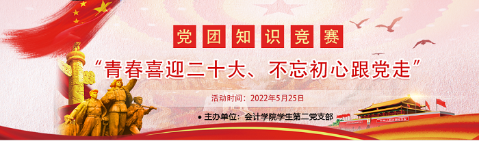 为进一步深入学习贯彻习近平新时代中国特色社会主义思想,深入学习贯彻习近平总书记在庆祝中国共产主义青年团成立100周年大会上重要讲话精神,以昂扬的斗志和精神状态迎接党的二十大胜利召开,会计学院学生第二党支部于5月25日组织开展了“青春喜迎二十大 不忘初心跟党走”知识竞赛活动,在校学生党员及发展对象参与其中。