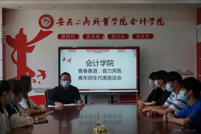 为迎接党的二十大胜利召开,纪念中国共产主义青年团建团100周年、五四运动103周年,着力加强会计学院青年学生思想政治引领,走好青春路,坚定跟党走,建功新时代。5月4日下午,会计学院团总支举办以“青春赛道,奋力奔跑”为主题的青年师生座谈会,会计学院团总支书记陈嵊及青年师生代表参加座谈会。