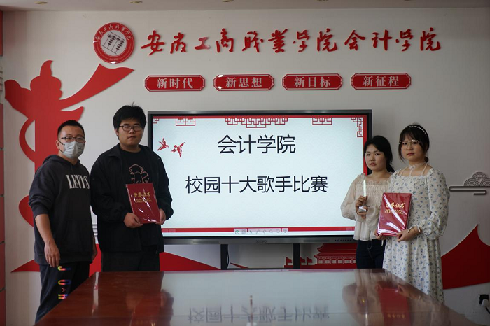会计学院团总支书记陈嵊、校团委指导教师杨磊作为评委参加此次比赛线下会场现场录制。经过激烈角逐,荣获“会计学院十佳歌手”称号作品选送校级十佳歌手评比。赛后,会计学院团总支书记陈嵊在比赛现场与参赛选手们进行了座谈,他对选手们的表现给予充分肯定。他指出,本次比赛是积极响应学校“喜迎二十大 ,永远跟党走, 奋进新征程”主题教育实践活动号召,通过一系列文娱活动激发了广大同学们战胜疫情的勇气和自信,展现了广大青年学生朝气蓬勃、奋发向上的精神面貌和较高的艺术审美追求,陈嵊寄语会计学院的青年学子们,面对当下的种种困难,不惧风雨、勇挑重担,在新时代的旋律中唱响青春!(撰稿:陈嵊 审核:杨锐)