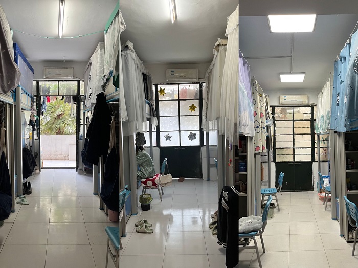 检查内容包括宿舍卫生情况及宿舍用电安全问题,学生干部从地面卫生、垃圾清理、物品摆放、床铺整洁度、阳台卫生及宿舍文化等六个维度对宿舍进行了检查和评分。