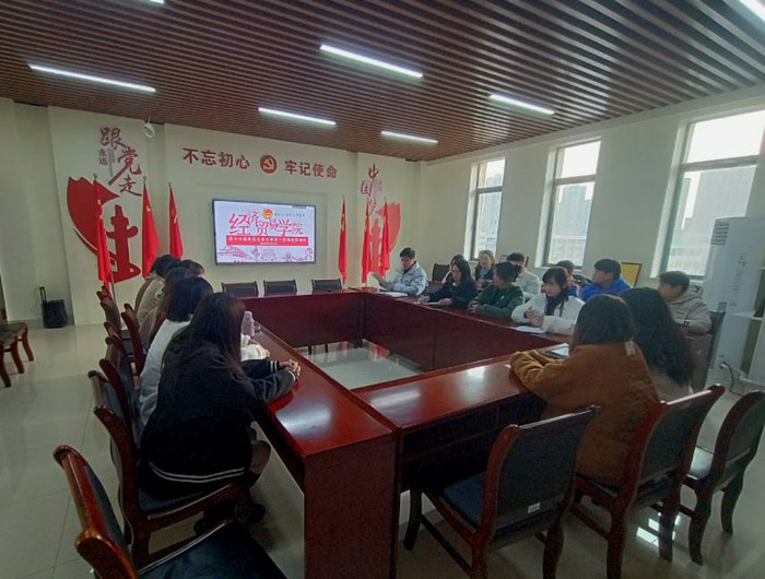 新学期伊始,为进一步加强我院学生会自身建设,做好新学期工作的安排, 2月25日17:00经济贸易学院在党员活动室召开新学期学生干部会议,会议由邬金老师主持,全体学生会干部参加此次会议。