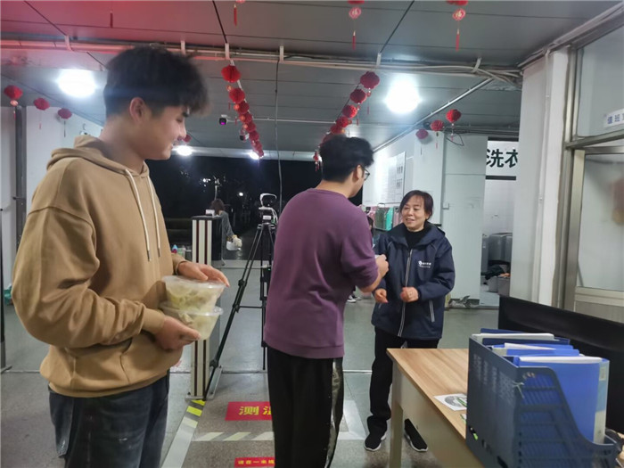 学生公寓管理工作不仅需要领导和老师们的指导,同时也离不开宿管员们的辛勤付出。孩子们将第一锅热气腾腾的饺子送到每位值班的宿管员手里,叔叔、阿姨们既感动又开心。