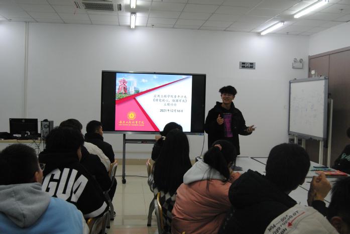 为学习宣传贯彻习近平总书记在中国共产党建党一百周年大会上的重要讲话精神,教育引导青年学子“学党史、强信念、跟党走”,应用工程学院于12月16日下午在实训楼202开展了“青马”培训主题沙龙活动。活动由学院团总支书记杨东主持,全体“青马”培训学员参加此次活动。