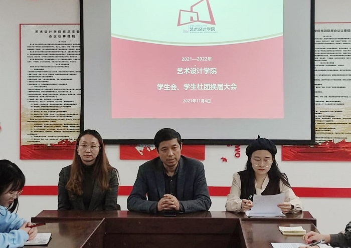 11月4日晚,艺术设计学院新一届学生会和各社团换届大会在致知楼三楼党员活动室召开。艺术设计学院党总支副书记、副院长哈春浪,学生党支部书记赵文卿,辅导员张军参加了本次会议。此次会议由团总支副书记胡佩佩主持。