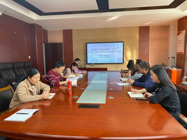 10月27日,思政课党支部召开党员政治学习专题活动,集中学习《中国共产党组织建设一百年》《习近平主席在中华人民共和国恢复联合国合法席位50周年纪念会议上的重要讲话》(以下简称《讲话》)。会议由支部书记蒋强军主持,全体党员教师参加。