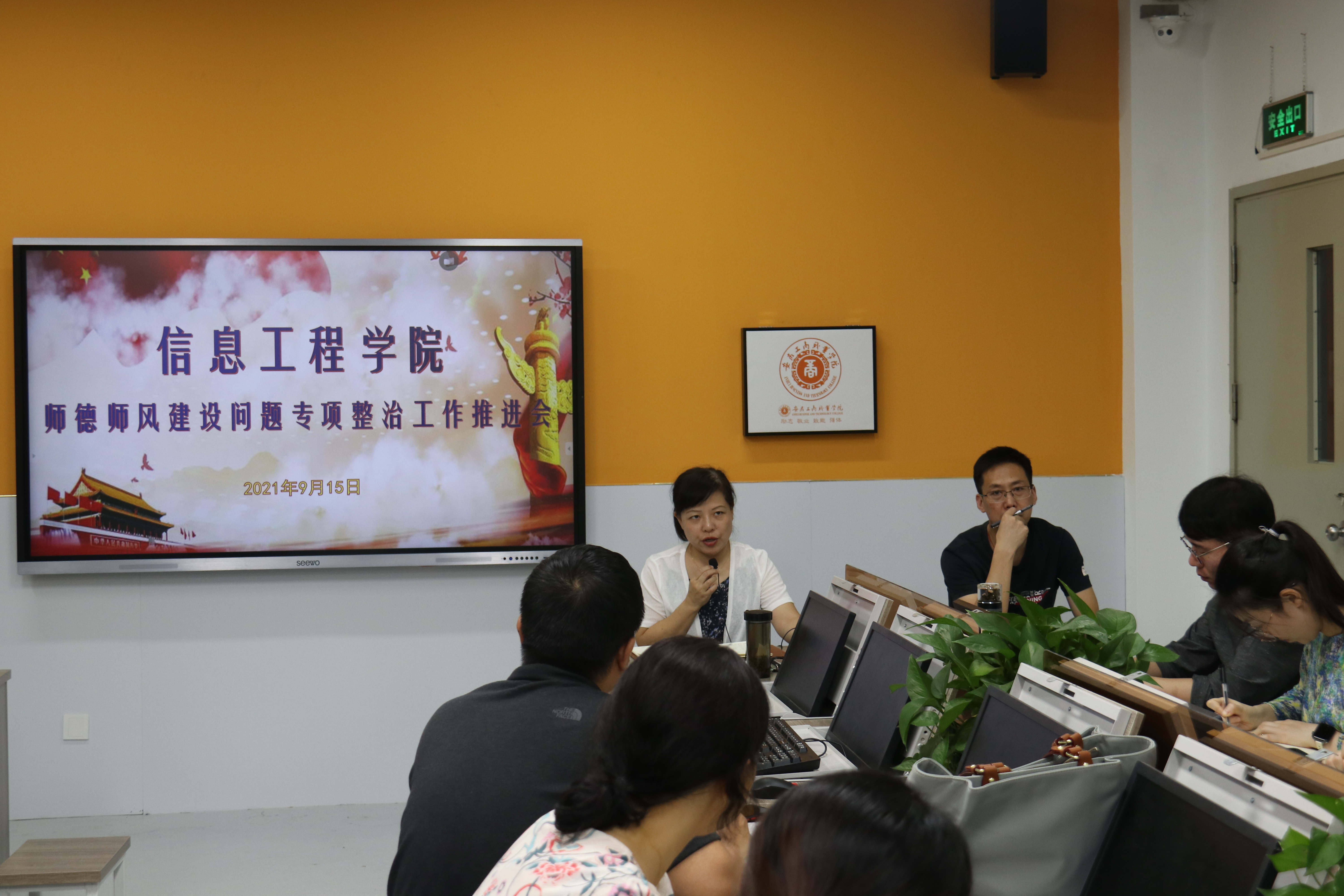 为深入贯彻落实学校师德师风建设问题专项整治工作动员大会精神,有效提升教师思想政治素质和职业道德水平,信息工程学院于9月15日在实训楼408教室召开师德师风建设问题专项整治工作动员部署会议,学院全体教职工参加了此次会议,会议由党总支书记张静雯主持。