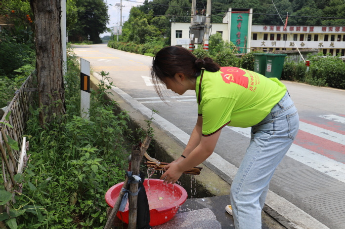 7月15日上午,实践团队一行再次来到2019年曾经造访过的曾奶奶家里。老人家看到熟悉的一抹“绿色”,激动地站在院子门口挥手欢迎。