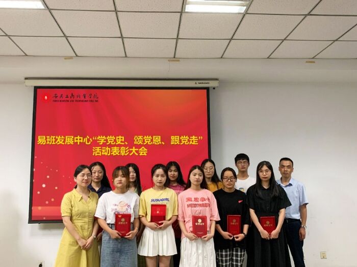 大会表彰了“学党史、颂党恩、跟党走”主题征文比赛的36名优秀选手、“四史”知识竞赛的10名优秀选手,指导老师们给获奖选手颁奖并与他们合影留念。