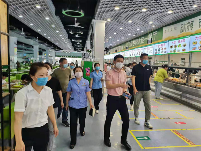 检查组一行对双凤校区第一食堂的结构和布局情况、餐具消毒卫生情况、设置设备配置情况、库房原材料规范存放情况、食堂从业人员办理健康证情况、各类原材料索证索票情况、食堂管理制度建设和落实情况、标识标牌完善情况等进行了全面检查。