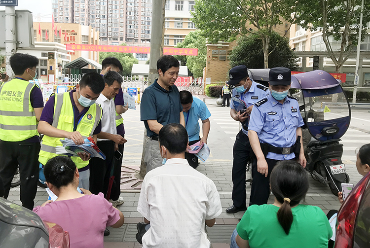 2021年中考进行之际,为进一步增强考生及家长识骗防骗的能力和意识,全力预防和减少涉考等电信网络诈骗案件的发生,6月15日,艺术设计学院党总支结合“我为群众办实事”实践活动,联合辖区派出所积极深入庐阳中学考点,利用家长等候时间开展反电诈宣传活动。我院党总支副书记哈春浪、杏林派出所所长彭卫及十余位师生和民警参加了此次活动。