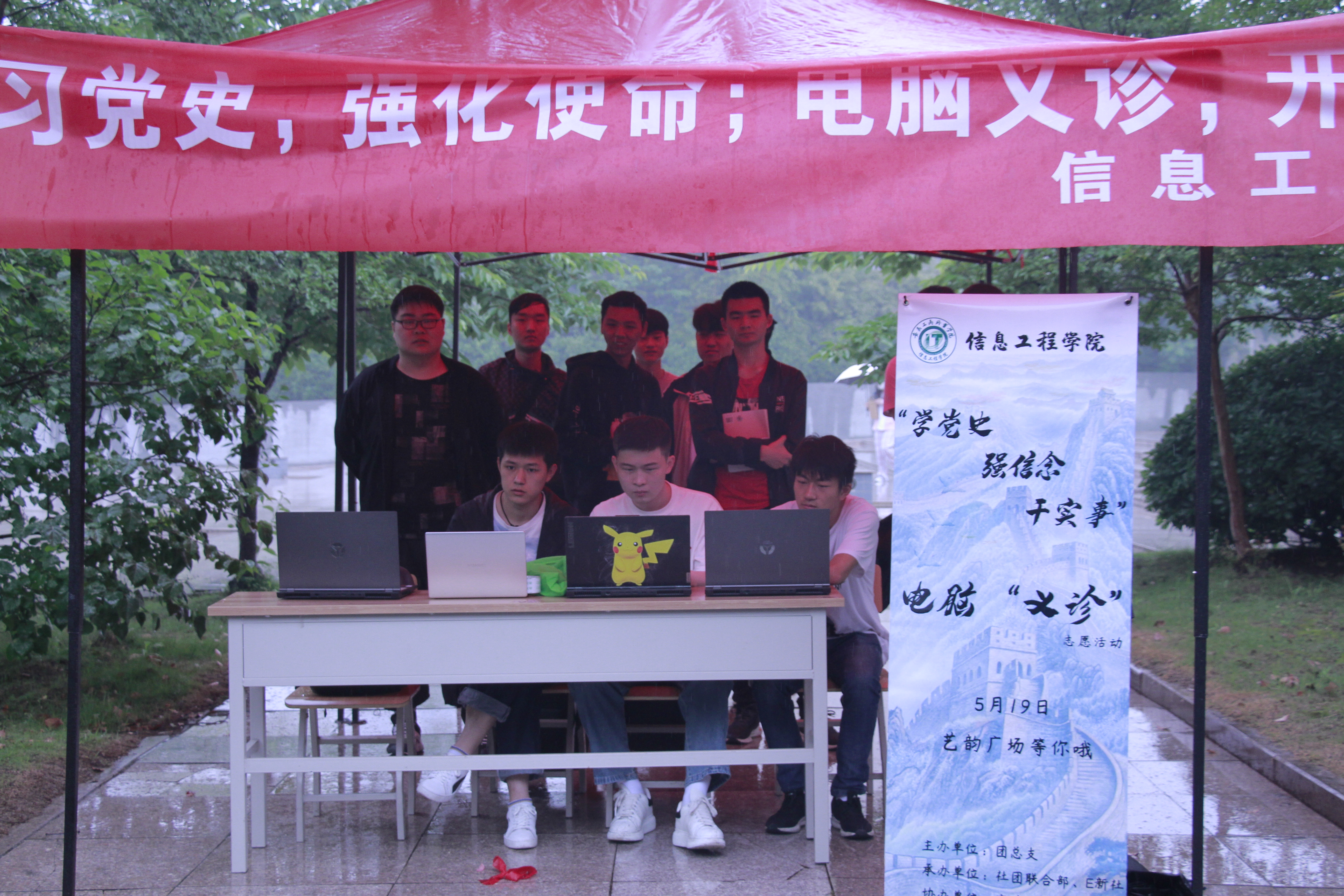 本次活动依托信息工程学院的专业特点,为同学们排忧解难,当起了“电脑医生”,解决电脑硬件和软件两方面的问题,包括:安装学习软件、病毒查杀、系统安装、系统优化、硬盘分区、驱动安装、系统故障排除等。活动当天,志愿者们早早的在艺韵广场旁搭建好了工作帐篷,热心为送来维修的电脑进行登记,电脑高手们耐心解答同学们咨询的相关问题,认真帮助他们开展电脑故障的排除和软件安装。从同学们一开始的满腔疑问,到电脑维修好后的轻松愉快,都让志愿者们感受到帮助他人、奉献爱心的开心与满足。