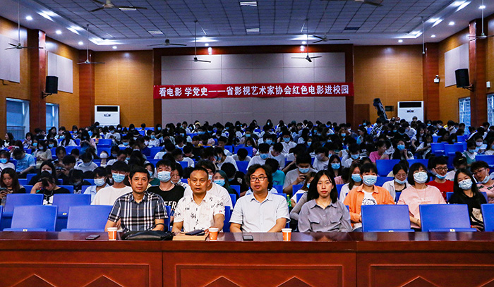 6月3日,艺术设计学院联合安徽省影视艺术家协会组织开展了“看电影 学党史——红色电影进校园”活动。安徽省影视艺术家协会理事、安徽电影馆馆长杨承愉,艺术设计学院院长孔成,副书记、副院长哈春浪及我院20级400多名同学走进庐阳校区“时间剧场”观看影片《红色娘子军》。