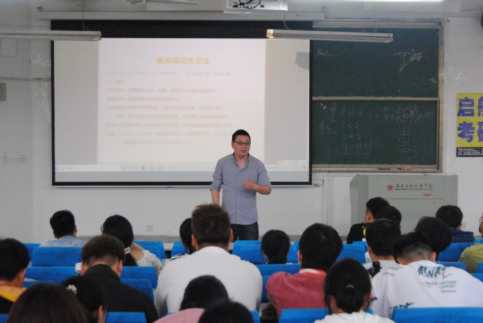 培训课上,胡正飞从新闻的定义入手,向同学们介绍了新闻标题、导语、正文的写作要求和写作方法,重点向同学们介绍了“校园会议类、活动类、竞赛类、表彰类”新闻的写作要求和技巧。他表示,“好的开头是新闻稿成功的一半,在撰写新闻稿的时候,寻找新闻点十分重要。”他告诉同学们,有些校园新闻稿的不足之处在于太有正文感,不易打动读者。他建议同学们在撰写校园新闻稿时,要站在受众的角度去撰写,寻找受众最关心、最感兴趣的内容和角度,突出记者和受众的“共情”特征,力争做到“以情动人、以情感人、以情教人”。