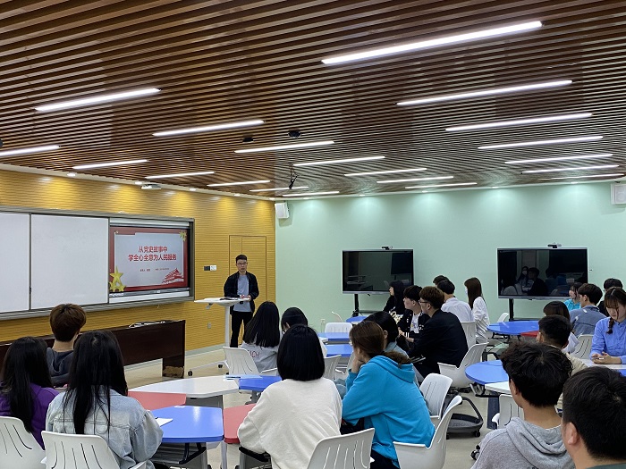 培训会上,赵昆老师结合党史学习教育,以“从党史故事中学全心全意为人民服务”为题为同学们讲授团课,他选取中国共产党百年历史中的典型故事,带领同学们从党史故事中学习革命先辈们的无私奉献精神,领悟中国共产党全心全意为人民服务的宗旨。随后,培训会传达学习了学联工作会议文件、学联历史、规章制度以及作风建设的要求。其中,重点学习了《关于学联学生会工作人员改进作风服务同学的若干规定》,进一步明确了学生会人员在日常工作中的要求,要做到恪守学生本分、牢记服务宗旨、永葆理想情怀、勤勉务实做事、营造平等氛围、摒弃庸俗习气,要实实在在做到全心全意为同学服务。
