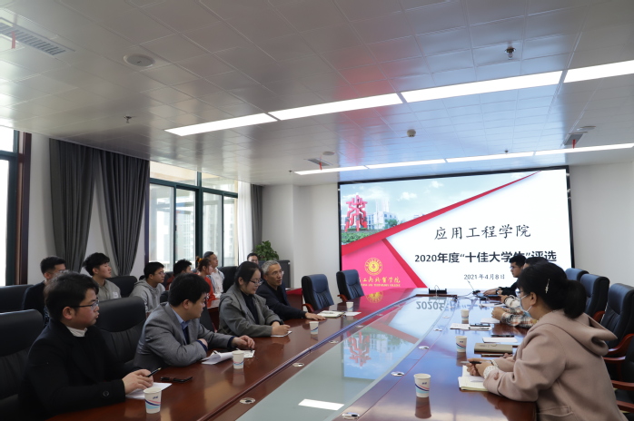 为充分发挥优秀大学生的典型示范作用,激励广大青年学生为实现中华民族伟大复兴的中国梦、加快建设美好安徽作出新贡献。根据学校工作安排,4月8日中午,应用工程学院开展2020年度“十佳大学生”评选活动在综合楼第六会议室举行。学院党总支书记丁浩和学院2019级、2020级专兼职辅导员组成评审委员会,对候选人现场展示与事迹材料公开评议。