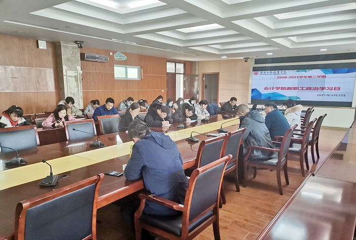 3月2日下午,会计学院在明德楼2号会议室召开全体教职工政治学习会议暨新学期工作安排会议,会议由党总支副书记杨锐主持,党总支书记、院长高克智,各教研室主任、支部书记以及全体在校在岗教职工参加了会议。