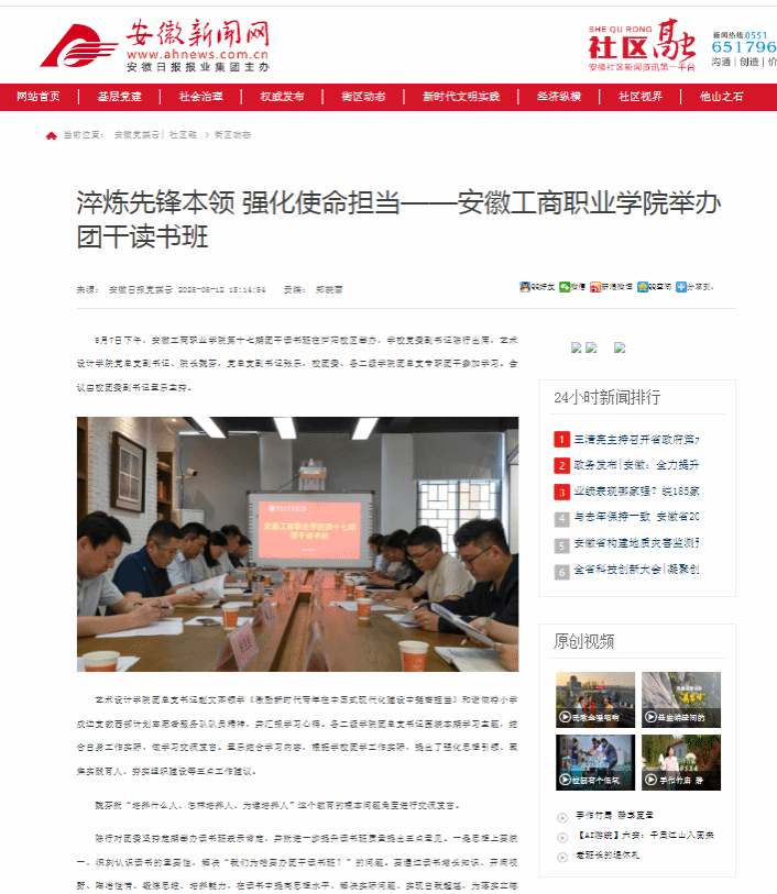原文链接:【安徽新闻网】报道:淬炼先锋本领 强化使命担当——安徽工商职业学院举办团干读书班