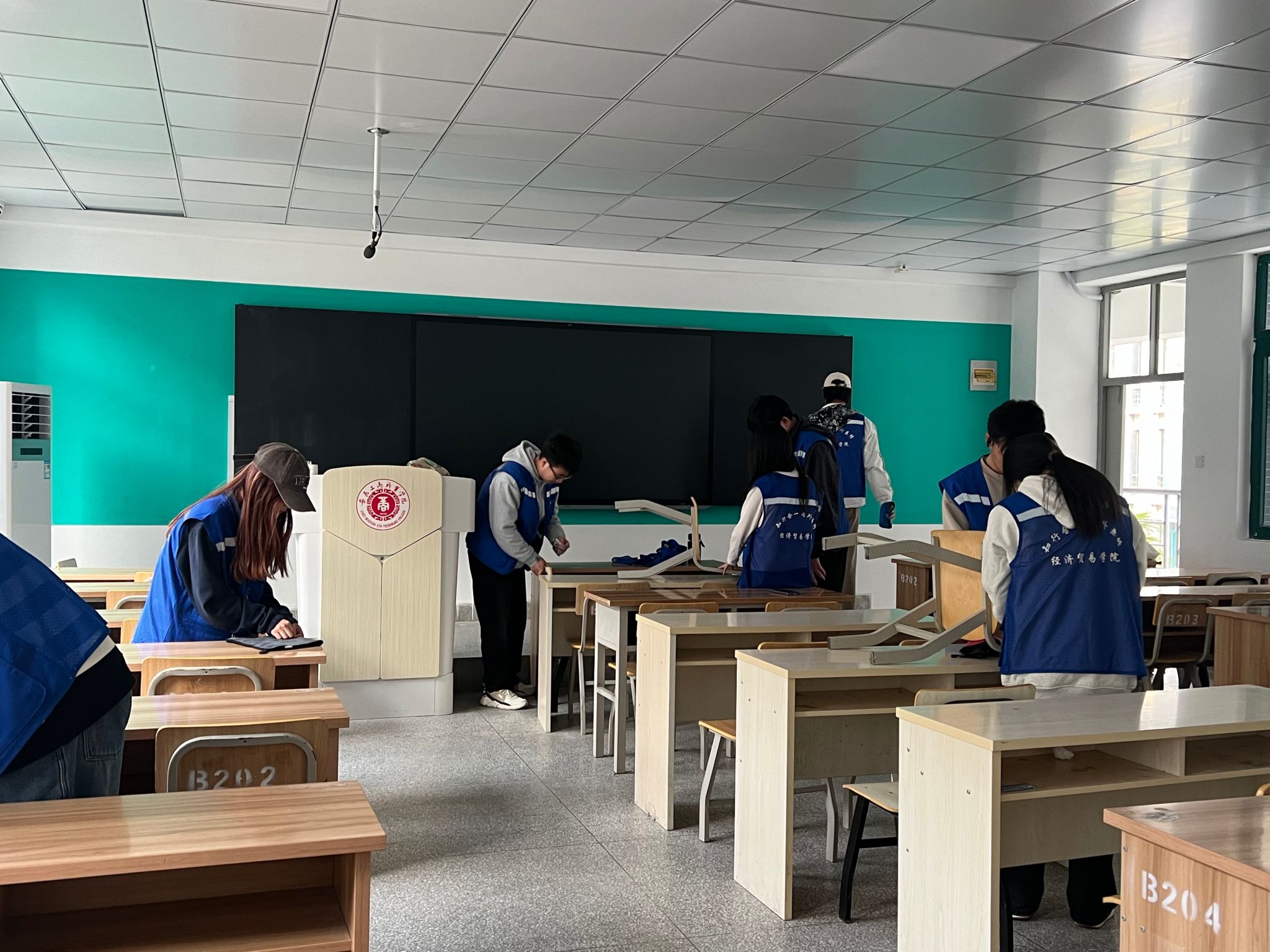 活动中,同学们热情高涨,干劲十足,三人一组、五人一群,分工明确,相互协作,不放过任何一个角落。教室内,同学们细致擦拭玻璃、清理桌面广告;食堂中,倡导“光盘行动”,擦拭餐桌、整理餐具,引导同学们文明用餐、节约粮食;池塘边,细致拾取塑料、烟头等垃圾,清除草丛中细小废弃物。流动的“经贸蓝”成为了校园里亮眼的风景线,同学们用行动诠释新时代青年的责任与担当,充分展现经贸学子学子们不怕脏、不怕累、团结协作、积极向上的精神风貌。