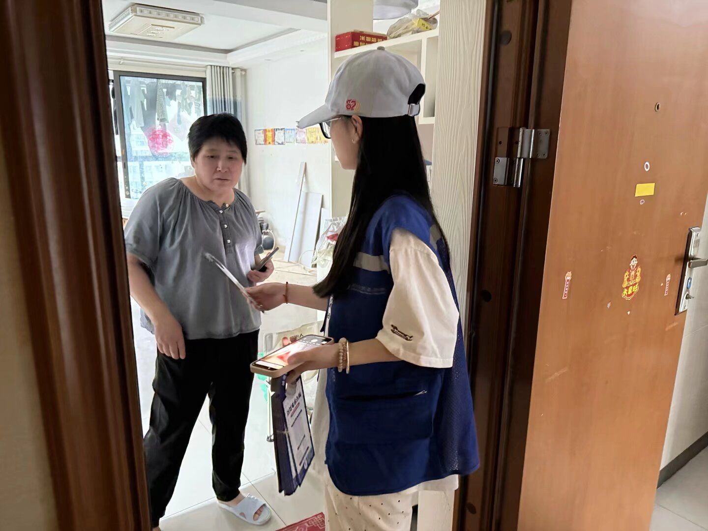 活动当天,志愿者与社区工作人员、物业人员组成联合宣传小组,分组包片、逐户走访,向居民发放《防诈骗知识彩页》,面对面讲解“网络贷款”、“冒充客服退款”、“虚假投资理财”等常见诈骗手法。针对老年人、家庭主妇等易受骗群体,志愿者结合辖区真实案例剖析诈骗话术,提醒居民“不轻信陌生电话、不点击未知链接、不泄露个人信息”的“三不”原则,并现场协助下载启用“国家反诈中心”APP预警功能,为居民的财产安全加上一道坚实的“防护锁”。此次活动累计走访居民260余户,发放资料300余份,取得了良好的宣传效果。