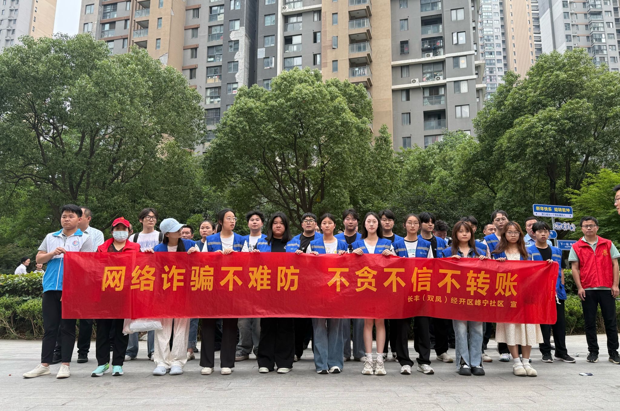 为充分发挥青年学生在社会治理中的积极作用,提高居民防范诈骗意识,筑牢社区安全防线,5月27日,经济贸易学院团总支联合双凤经济开发区综治中心、峰宁社区及梧桐里小区物业服务中心,组织20余名青年志愿者深入梧桐里小区开展防诈宣传入户活动,切实将反诈知识送到居民身边。