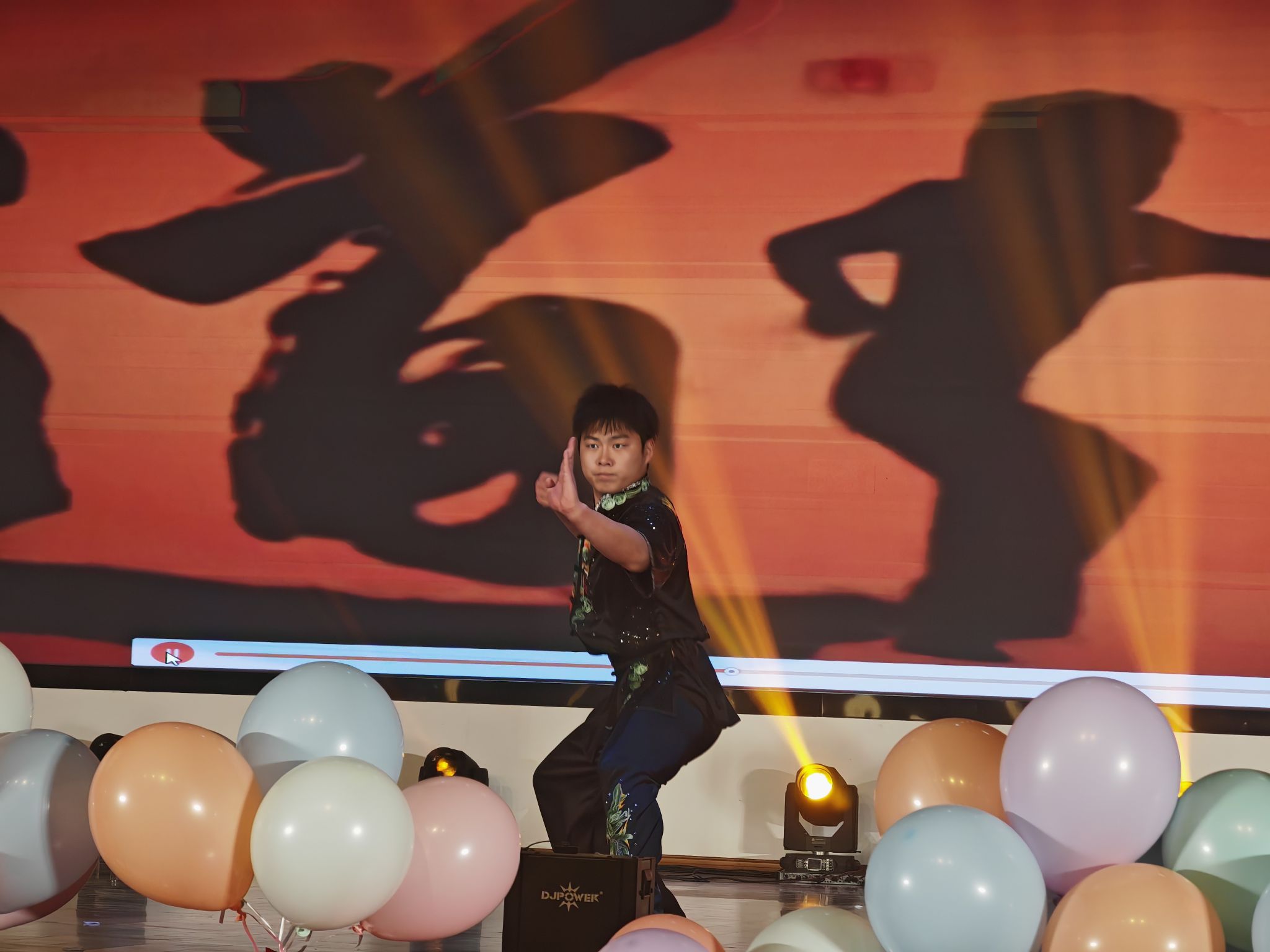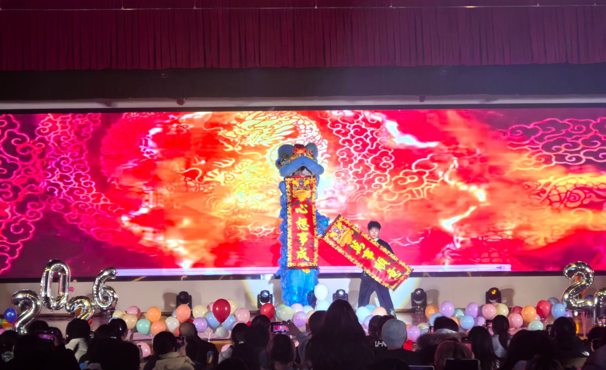 古典舞《扇语春风》翩跹起舞,舞出春意盎然;歌曲串烧青春洋溢,唱响时代旋律;爵士舞《Abracadabra》与流行舞《What is Love?》节奏动感,闪耀自信光芒;小品《互联网体检》《显摆大会》诙谐生动,折射青春百态;现代舞《路西法》以张力十足的编排,展现艺术追求。互动环节妙趣横生,“接梗”与“马年祝福语接龙”引发阵阵欢笑,师生同乐、气氛热烈。晚会高潮在非遗表演《武术+舞狮》中澎湃而至。武术表演刚劲凌厉、虎步生风,尽显中华武学之魂;舞狮腾挪跳跃、灵动威猛,在铿锵鼓点中焕发传统文化勃勃生机。傣族舞《水之灵》则以柔美婉约的舞姿,勾勒出一幅流动的诗意画卷,为演出增添一抹灵动韵致。