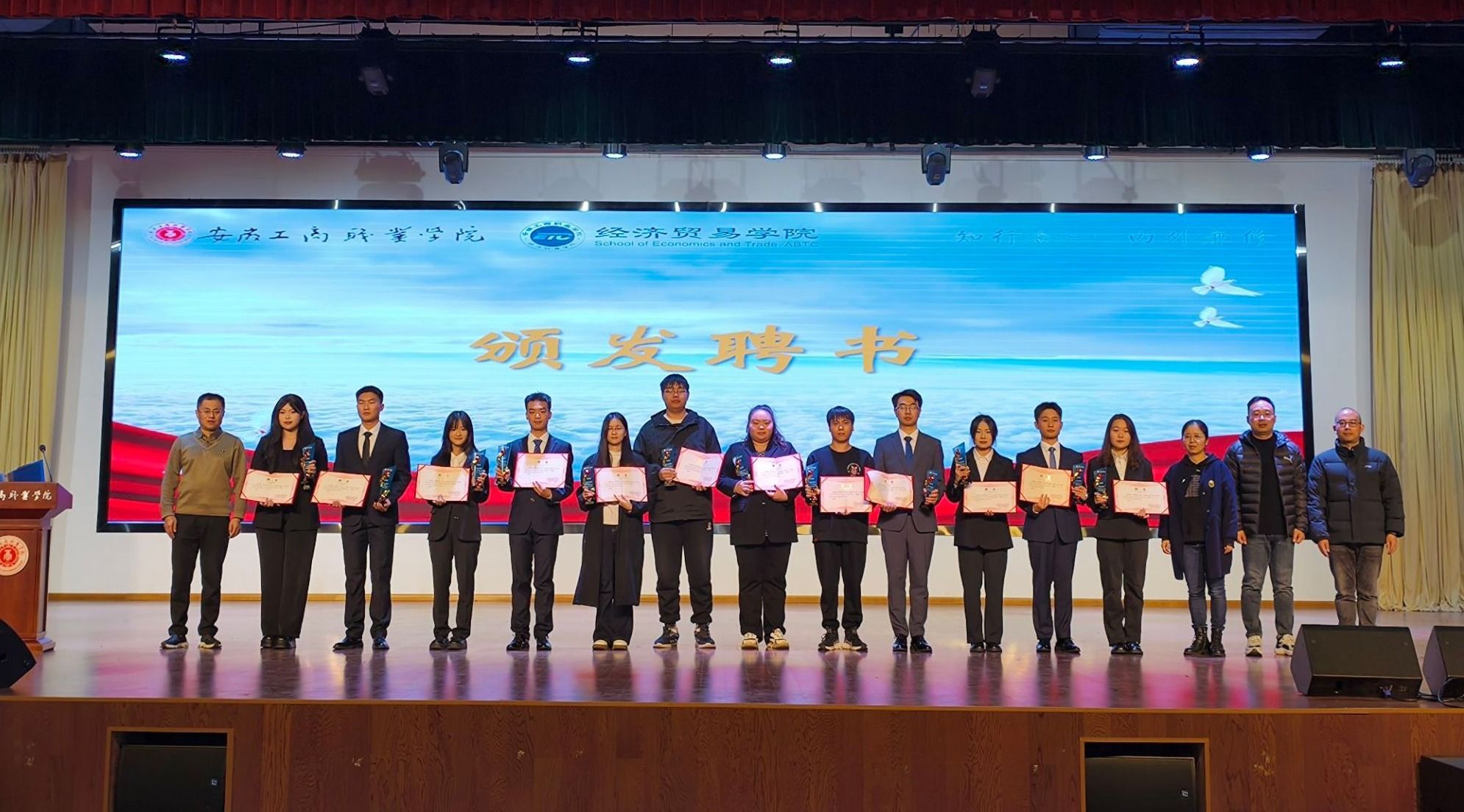 凝心聚力共奋进,砥砺前行再扬帆。2024年11月25日,经济贸易学院团总支学生会第十七届换届大会在大学生活动中心隆重举行。学院党总支书记边昊、党总支副书记马莉、副院长张键出席会议,学生党支部书记朱清涟、杨玉娇,团总支书记邬金及辅导员代表支凤宁、罗浩和2024级全体新生参加此次大会。