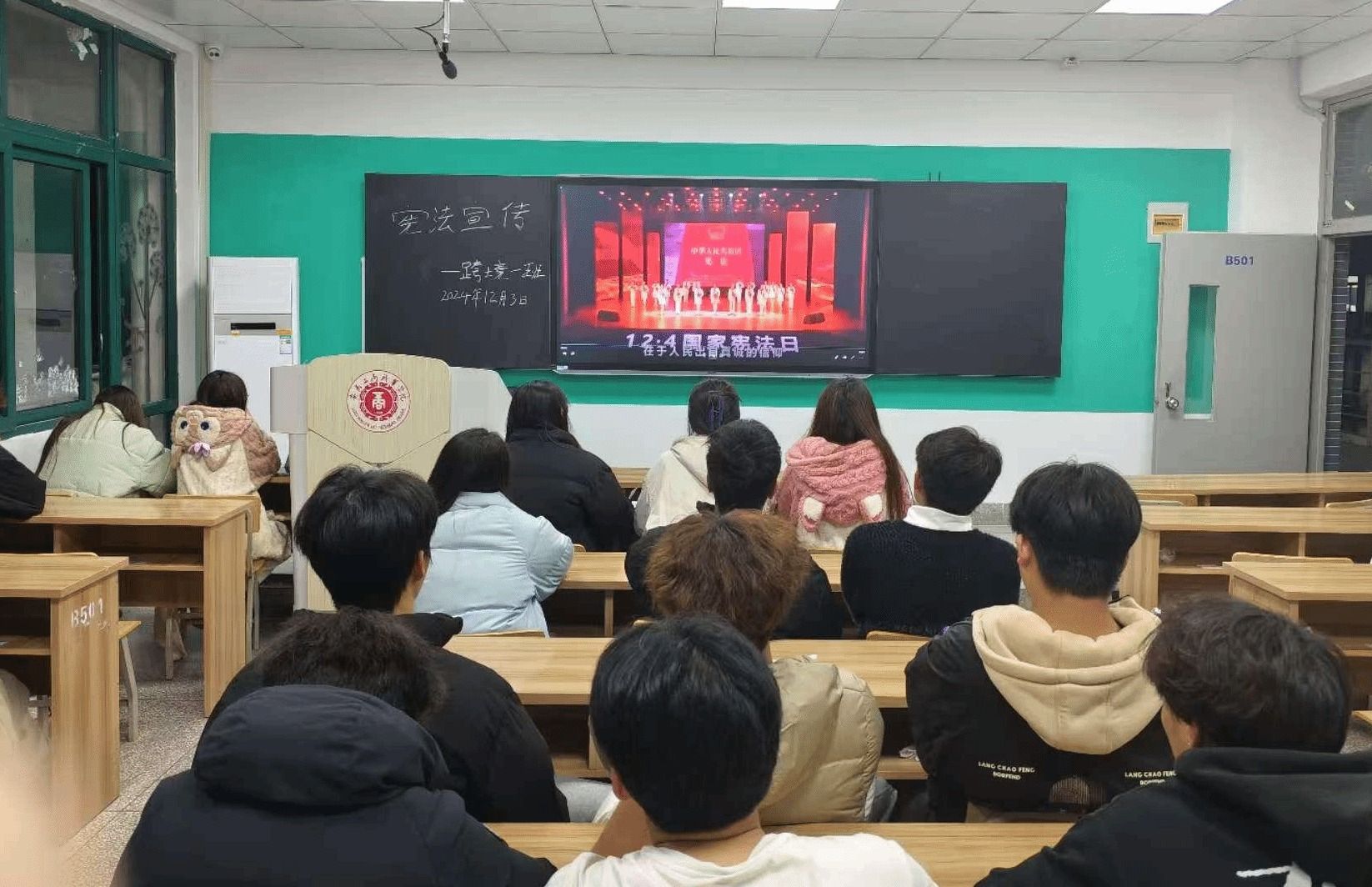 学宪法,生生入心。学院各班级召开学宪法主题班会,辅导员结合宪法案例,为同学们讲述了宪法的基本知识以及维护宪法的重要意义,加强同学们对宪法的理解。跨境电子商务2024级4班的余雪飞说到:“作为新时代的青年,我们应该积极学习宪法,不断提高自己的法治素养和综合能力,学会维护自己的合法权益,更要积极参与到社会建设中来,共同推动法治社会的进步。”