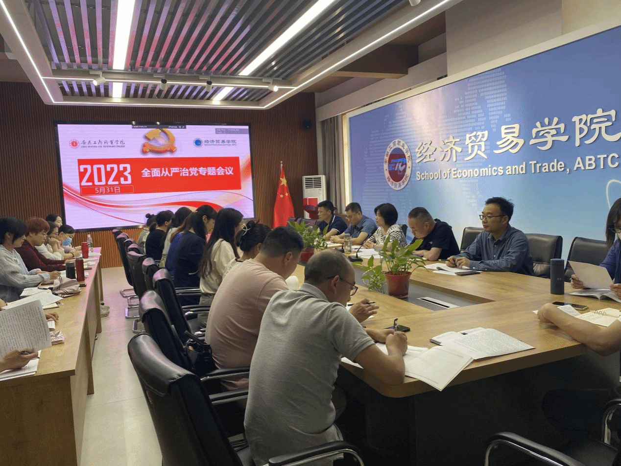 为推动全面从严治党向纵深发展,5月31日,经济贸易学院在5楼教师能力提升中心召开2023年全面从严治党暨党风廉政建设专题会议,全体教职工参加会议。