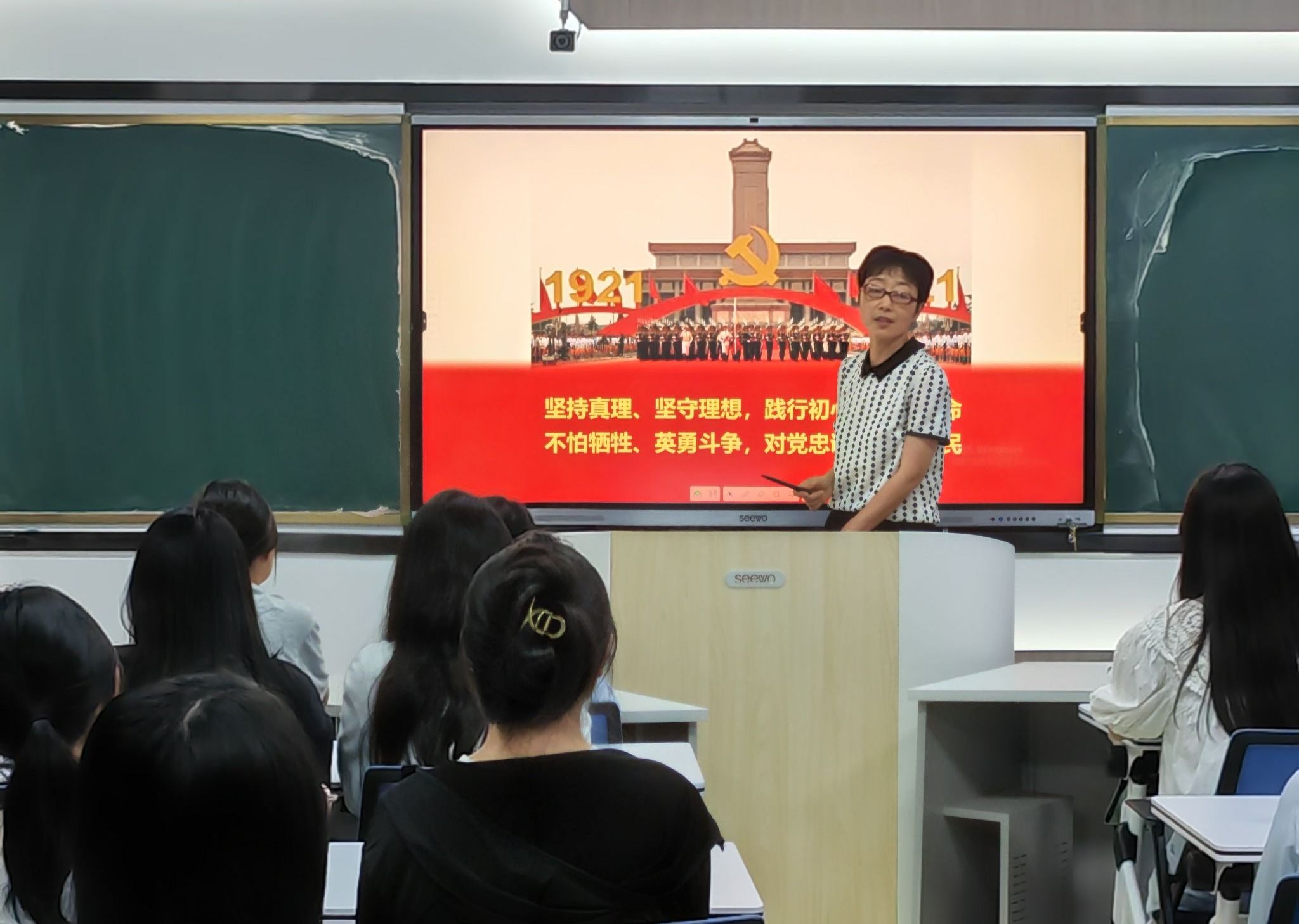 为深入学习贯彻党的二十大精神,将主题教育不断引向深入,更好地把青年团结起来、组织起来、动员起来,经济贸易学院邀请马克思主义学院何丽老师于6月28日在学院415教室开展以《弘扬伟大建党精神 凝聚青春奋进力量》为主题的团课活动。学院各年级学生党员、学生干部和学生代表参加学习。
